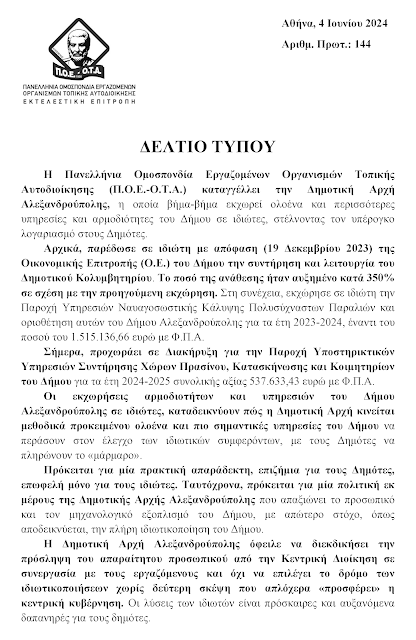 Ο Σύλλογος εργαζομένων Δήμου Χαλανδρίου θα πραγματοποιήσει εκδρομή στην ΚΑΛΑΜΑΤΑ, Σάββατο 29-06-2024.